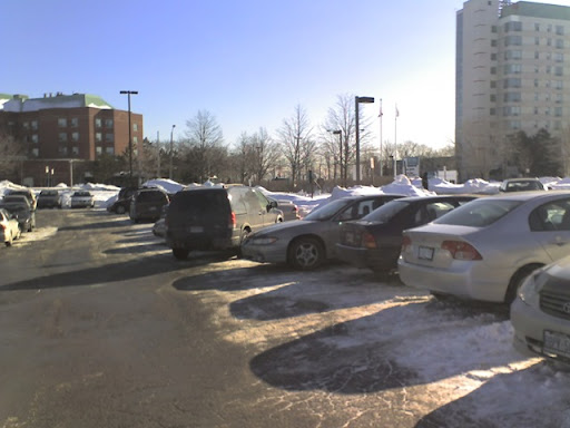 Lo primero que me llamó la atención fue -por supuesto- el estacionamiento. Yo sé que hubo nieve, pero todo tiene un límite! Miren las fotos...