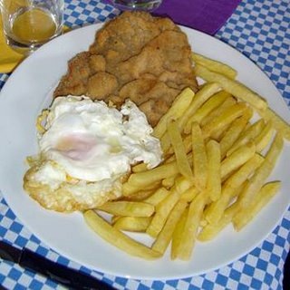Oh, what I had for lunch yesterday! A veal schnitzel 'complete' (milanesa completa, in Spanish), which comes with French fries and two fried eggs. Not healthy, I guess, and I wonder how many days would I last eating this every single day for a month, but I don't care. Yummy.