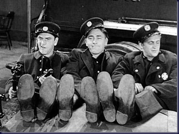The Three Stooges (clockwise from left, Larry Fine, Moe Howard and Jerome "Curly" Howard)